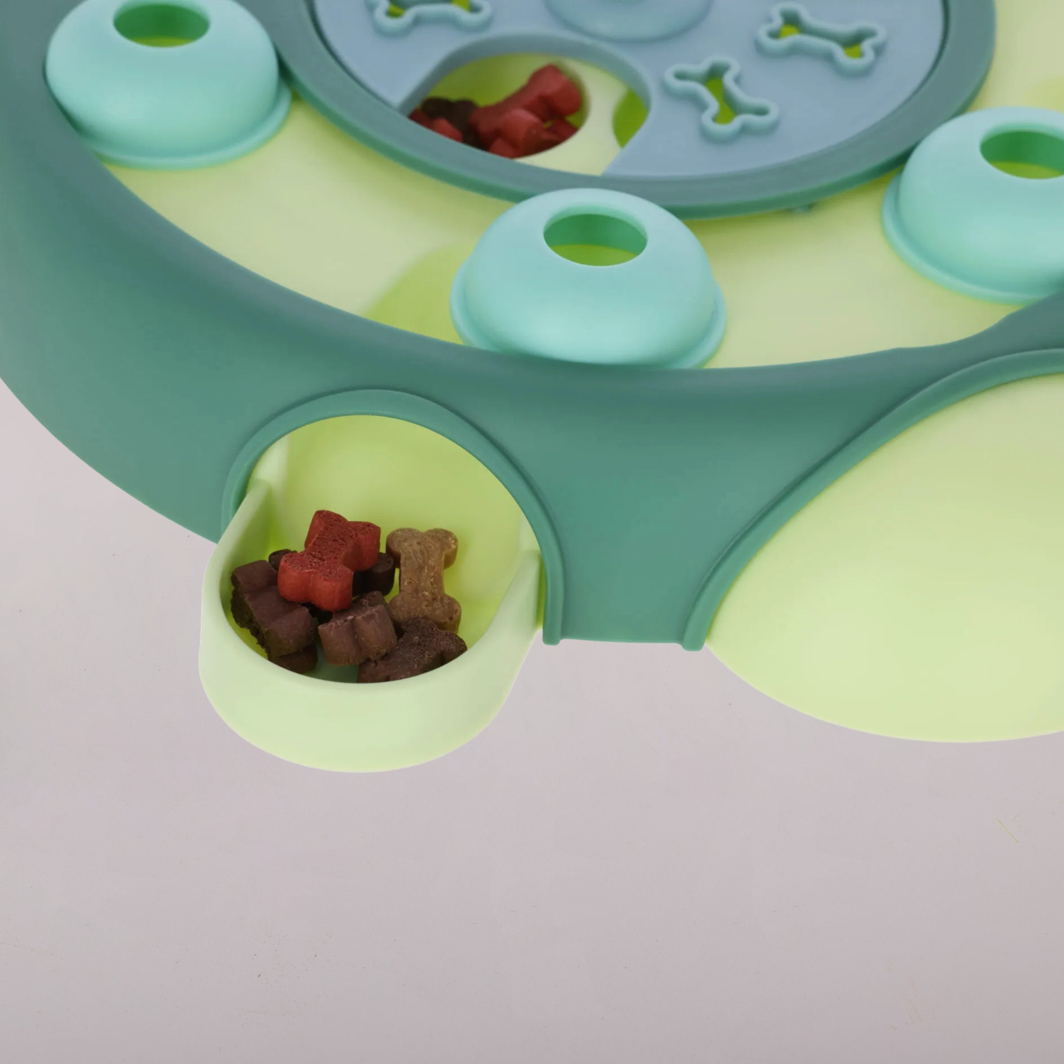 - Cache quelques friandises dans les compartiments et sous le plateau